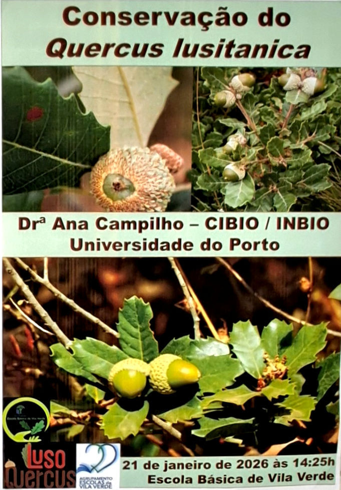 Hoje pelas 14:25, decorreu na EBVV mais uma palestra seguida de uma atividade prática no horto do Clube da Floresta na nossa horta pedagógica , dirigida para todos os alunos do oitavo ano da Escola Básica de Vila Verde no âmbito do tema "floresta autóctone". Desta vez tivemos o privilégio de ter na nossa Escola duas investigadoras do BIOPOLIS-CIBIO da universidade do Porto, a Drª Ana Campilho, especialista na nossa flora autóctone e oradora desta palestra e a Drª Ana Seabra. Esta abordagem sobre o Quercus lusitanica, uma espécie da nossa floresta autóctone ameaçada, insere-se na implementação do nosso Plano de Ação do nosso projeto Eco Escolas deste ano letivo que continua a priviligiar o tema da Floresta. A palestrante iniciou a sua intervenção por apresentar a biodiversidade da espécie Quercus no território Nacional, para posteriormente abordar a espécie do seu projeto Lusoquercus, uma espécie ameaçada pela alterações climáticas.